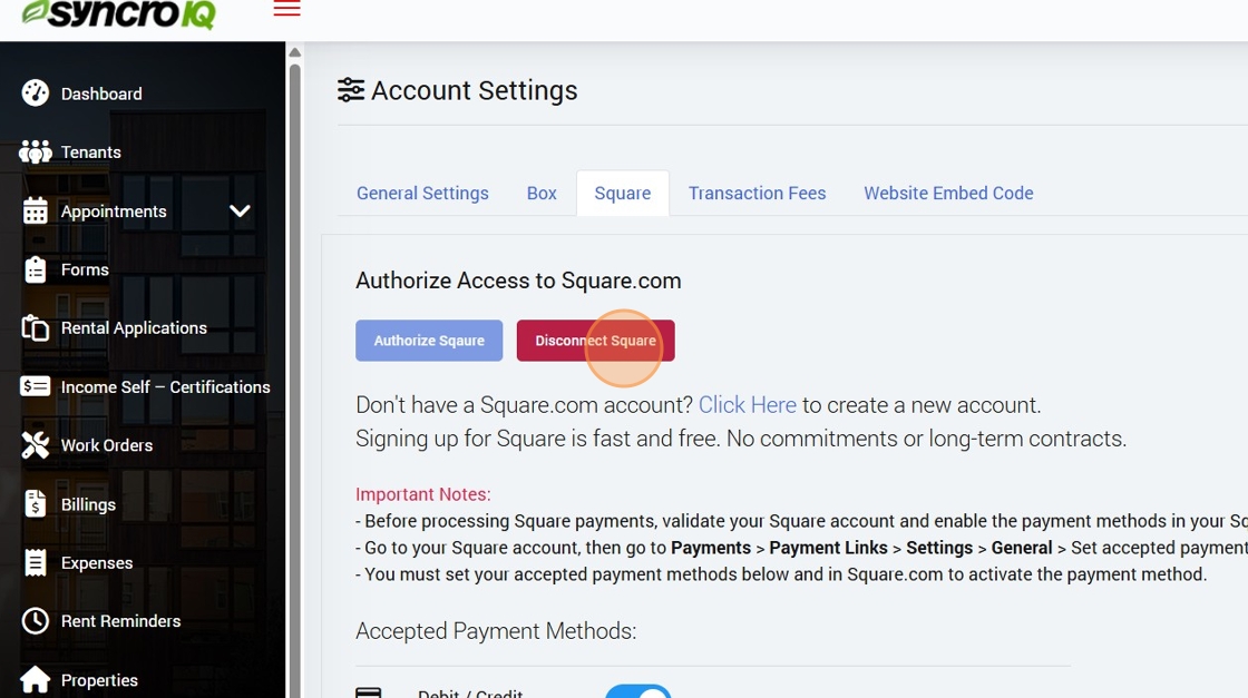 6. Important Step: To completely disconnect SyncroIQ from your Square Account. Follow the steps included in the link below to disconnect SyncroIQ from your Square Dashboard.