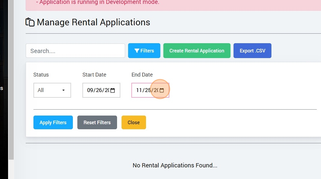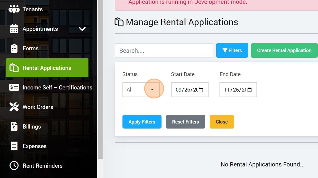 Tip: Tip! Draft, Submitted, Pending Review, Incomplete, Accepted are the options for the status.